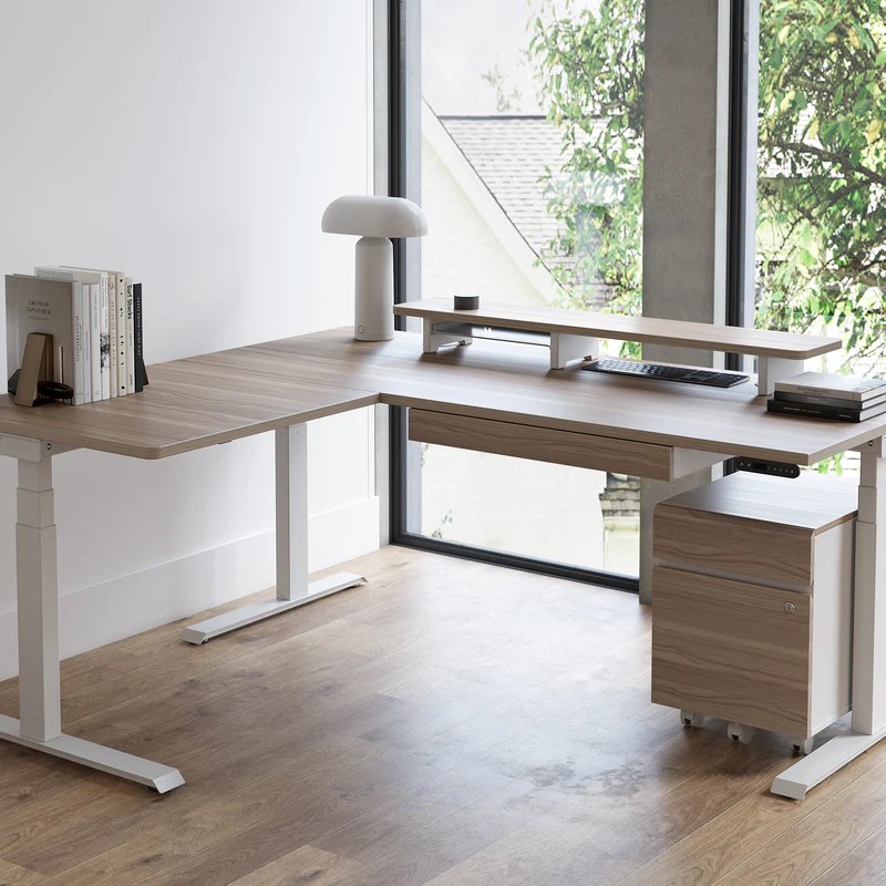 Raumökonomie: L-Formen nutzen Ecken effizient und schaffen mehr Arbeitsfläche pro Person. Teamzonen: Ecklösungen lassen sich als kleine Inseln organisieren — ideal für Pair-Programming, Design-Sprints oder schnelle Brainstormings. Flexibilität: Höhenverstellbare Eckplätze erlauben individuellen Komfort, ohne den Raum neu zu konfigurieren. Für Recruiter sind solche Zonen positiv: Bei Vorstellungsgesprächen vermitteln sie Professionalität und kreative Arbeitsatmosphäre zugleich.